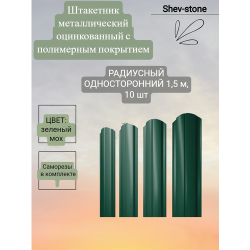 Металлический штакетник для забора радиусный - это тип ограждения, состоящий из металлических панелей шириной 100 мм, длина 1,5 м. Штакетник металлический толщина 0,45мм , односторонний окрас в упаковке идет 10 шт, также 40 шт саморезов 52х19 мм в комплекте. Евроштакетник односторонний изготавливается из стального оцинкованного листа с полимерным покрытием. Это придает ему прочность и уникальный по своей структуре внешний вид, напоминающий традиционный деревянный забор, обладающий, однако, рядом преимуществ. Преимущества металлического забора из штакетника: