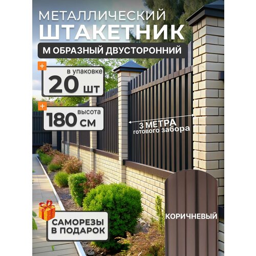Купить Штакетник металлический для забора М образный 1,8 м 8017/8017 20 шт с доставкой по всей России.