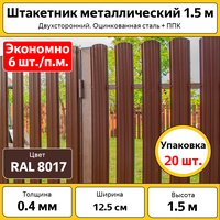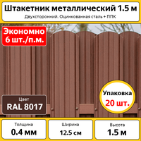 Купить Штакетник металлический (евроштакетник) полукруглый (20 шт.) / высота 1.5 м / ширина 12,5 см / 0.4 мм / коричневый / оцинкованный с доставкой по всей России.