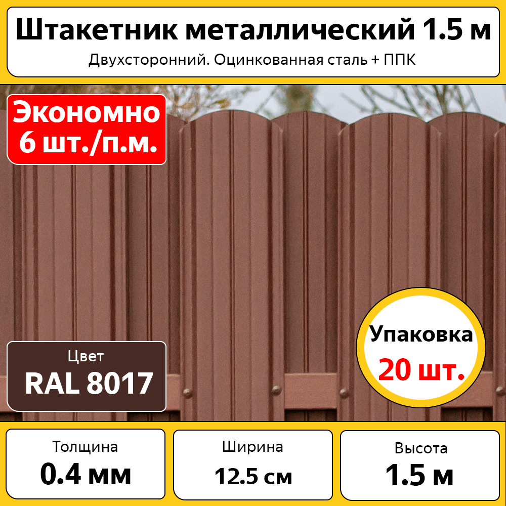 Штакетник металлический (евроштакетник) полукруглый (20 шт.) / высота 1.5 м / ширина 12,5 см / 0.4 мм / коричневый / оцинкованный: сравнение цен, характеристики, фото, актуальное наличие и цены.