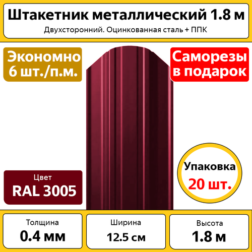 Штакетник металлический (евроштакетник) полукруглый (20 шт.) / высота 1.8 м / ширина 12,5 см/ 0.4 мм / красный / оцинкованный: сравнение цен, характеристики, фото, актуальное наличие и цены.