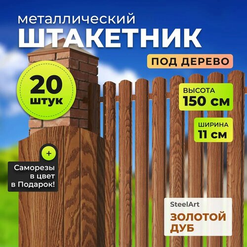 Штакетник металлический «под дерево» АЛЬТЕР для забора, высота 1,5 метра, цвет золотой дуб: сравнение цен, характеристики, фото, актуальное наличие и цены.