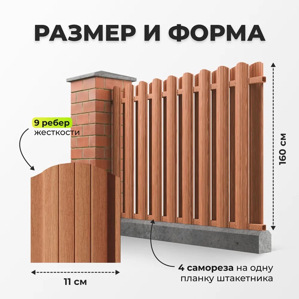 Штакетник металлический «под дерево» АЛЬТЕР для забора, высота 1,6 метра, цвет орех: сравнение цен, характеристики, фото, актуальное наличие и цены.