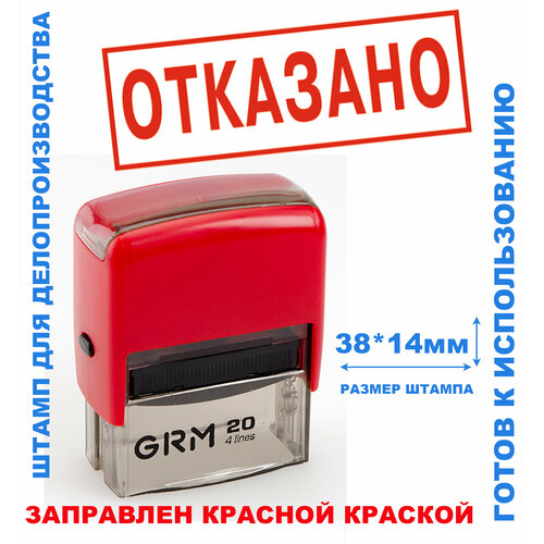 Купить Штамп на автоматической оснастке 38х14 мм «отказано» с доставкой по всей России. Штамп на автоматической оснастке 38х14 мм «отказано»: сравнение цен, характеристики, фото, актуальное наличие и цены.