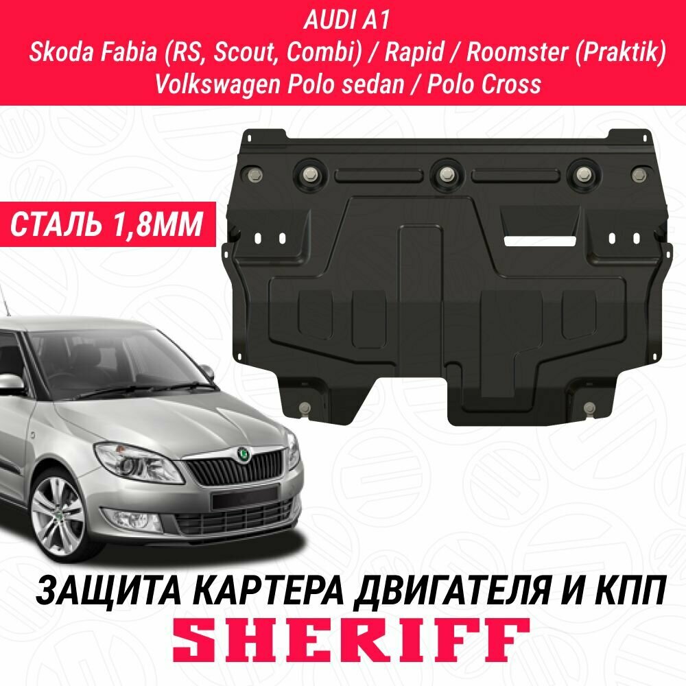 Купить Штампованная защита картера для JETTA VA3 VOLKSWAGEN POLO SKODA RAPID FABIA ROOMSTER, сталь 1,8мм, с крепежом, SHERIFF с доставкой по всей России.