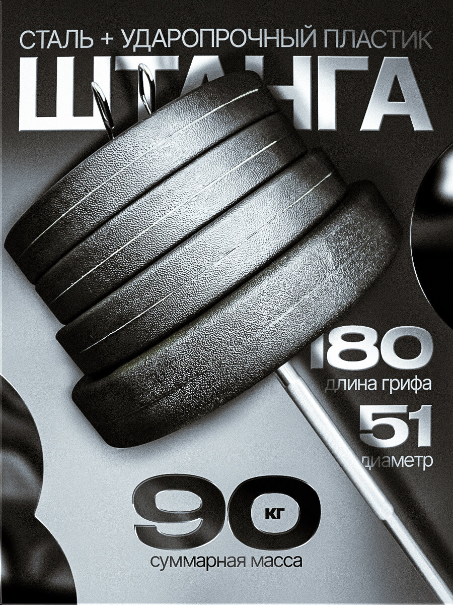 Купить Штанга 90 кг D51, прямой гриф, композитные диски (блины) с доставкой по всей России. Штанга 90 кг D51, прямой гриф, композитные диски (блины): сравнение цен, характеристики, фото, актуальное наличие и цены.