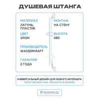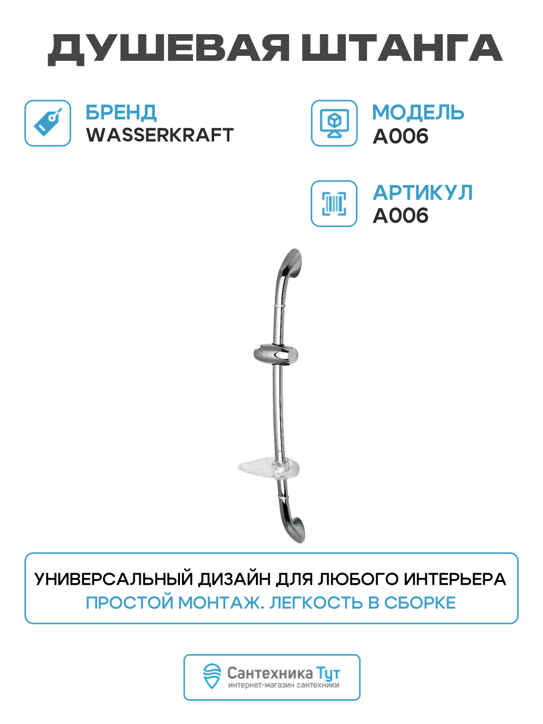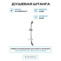 Купить Штанга для душа металлическая с мыльнецей A006 WasserKRAFT цвет хром с доставкой по всей России. Штанга для душа металлическая с мыльнецей A006 WasserKRAFT цвет хром: сравнение цен, характеристики, фото, актуальное наличие и цены.