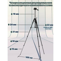 Материал изготовления - ABS-пластик, металл, что гарантирует прочность и долговечность конструкции. Вес штатива составляет всего 1150 грамм, что делает его легким и удобным в использовании.