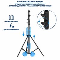 Купить Штатив BHS-JBK для съемки, усиленный удлиненный до 3,5 м, резьба 1/4, на колесах с доставкой по всей России.