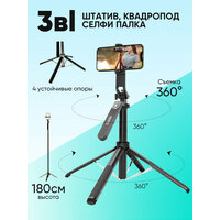 Штатив для телефона, 3 в 1, 180 см, селфи палка , квадропод для смартфона, держатель напольный, настольный, для съемки, черный: сравнение цен, характеристики, фото, актуальное наличие и цены.