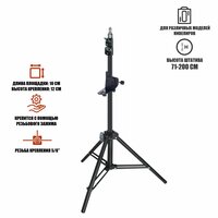 Штатив изготовлен из прочного и надежного материала, он обеспечивает стабильную устойчивость и надежность во время работы.