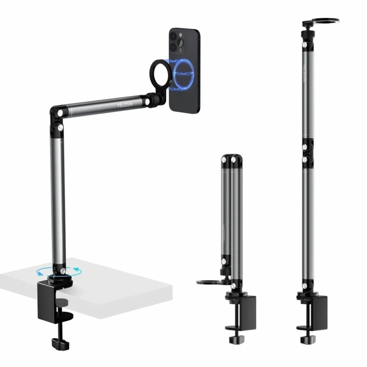 Купить Штатив настольный для телефона с зажимом на стол с MagSafe для съемки видеоблога Telesin P3-DS-02 с доставкой по всей России.