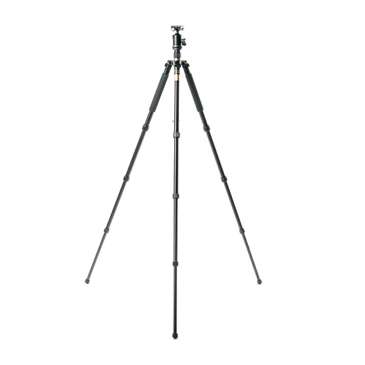 Алюминиевый четырехсекционный штатив для фото- и видеокамер оснащен надежными регулируемыми ножками с резиновыми накладками и шаровой головой, оборудованной быстроразъемным соединением. Ножки фиксируются с помощью надежных цанговых зажимов.