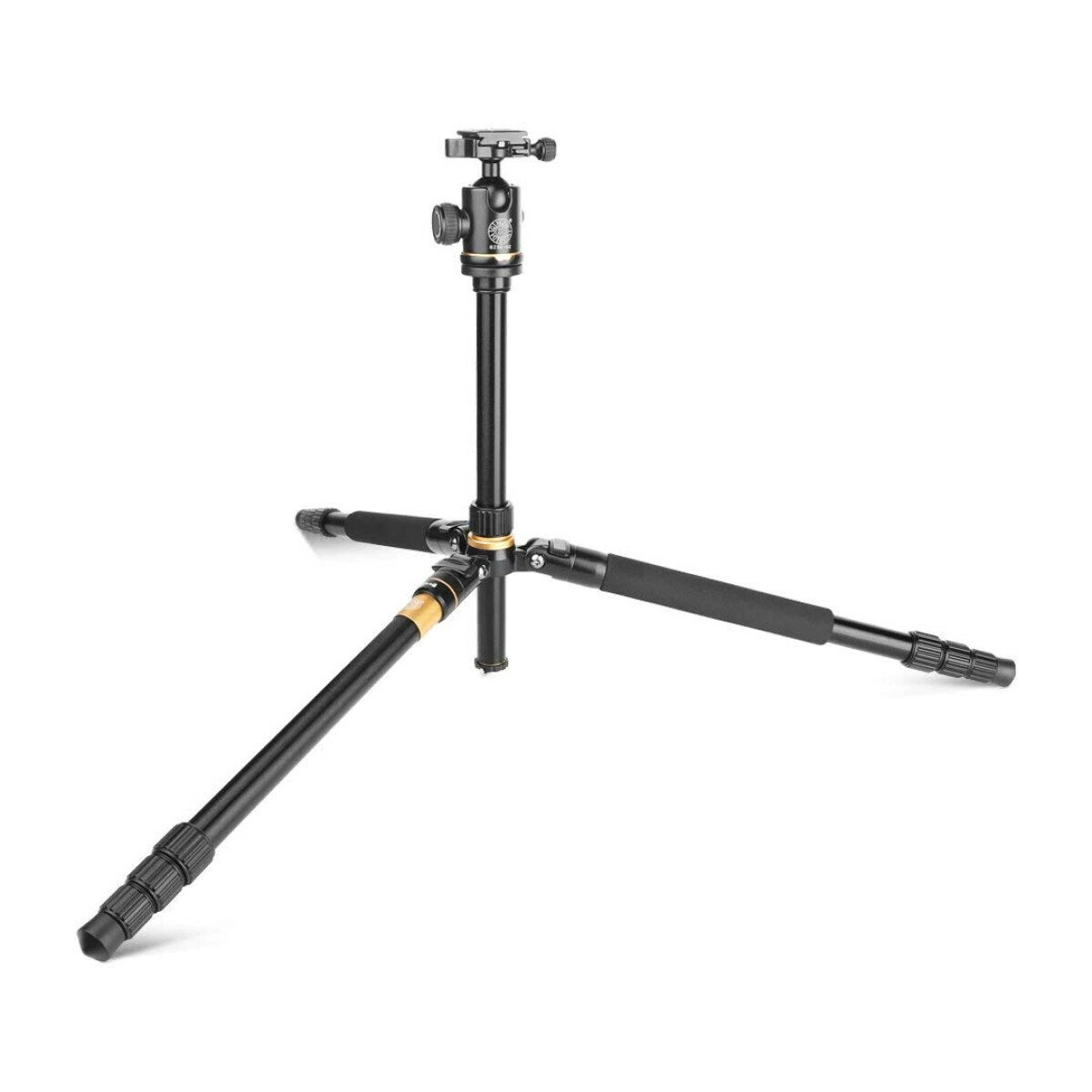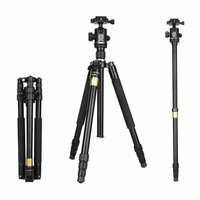 Максимальная рабочая высота штатива - 1,59 метра, а длина в собранном состоянии - всего 43 см. Вес составляет - 1,53 кг. Таким образом штатив с успехом можно использовать не только в домашних условиях, но и при съемке на выезде. В комплект входит штативная шаровая голова QZSD-02.
