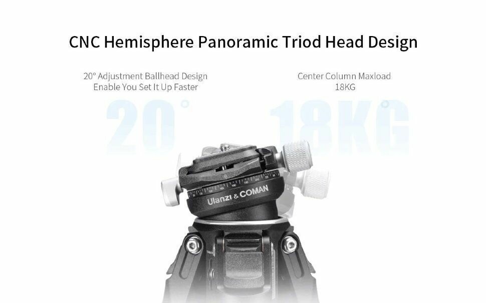 Съёмная центральная колонна может быть установлена в обратном положении для съёмки с низкого ракурса. Треугольный профиль даёт больше прочности и надежности, штатив выдерживает до 18 кг нагрузки! Дополнительную устойчивость обеспечит крюк, на который можно повесить груза