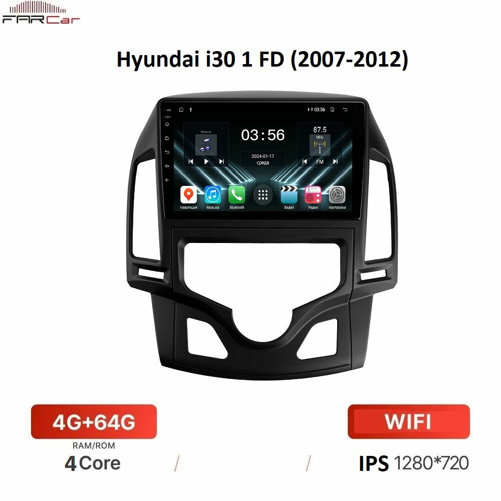 Штатная магнитола Хендай i30 FarCar (Hyundai i30 1 FD) 2007-2012 F2 Климат-контроль (4GB/64GB/WiFi/GPS/BT/IPS): сравнение цен, характеристики, фото, актуальное наличие и цены.