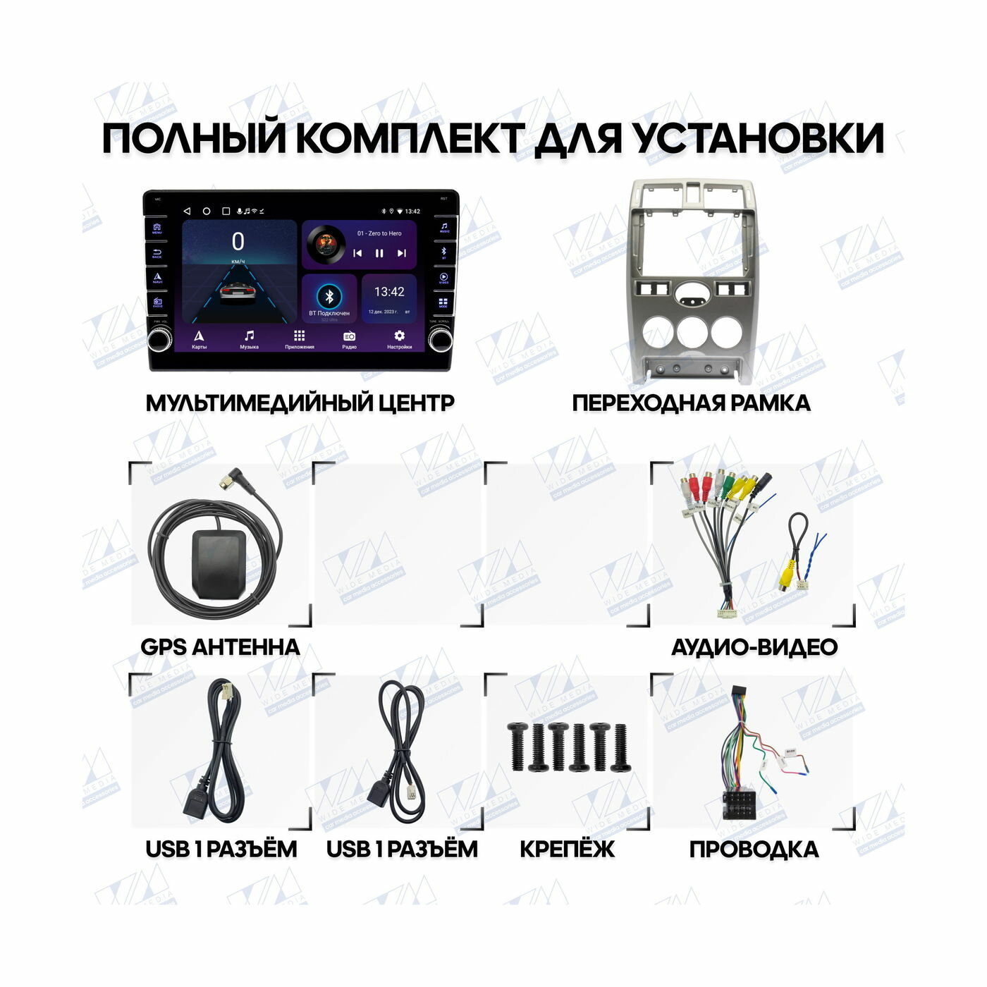 | Подробная комплектация | Автомагнитола, Переходная рамка, Проводка для подключения |