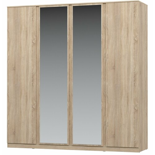 Штерн (STERN) шкаф 4-дверный Дуб Сонома 4-дверный шкаф Штерн функционально дополнит современный интерьер и поможет хранить предметы гардероба в полном порядке и быстром доступе. Внутреннее наполнение представлено отделениями с тремя продольными штангами для вешалок, двумя антресольными нишами для головных уборов и сезонных вещей, а также рядом полок для сложенной одежды. Центральные фасады оснащены зеркалами в полный рост, которые позволят детально оценить подобранный образ и визуально расширят пространство.