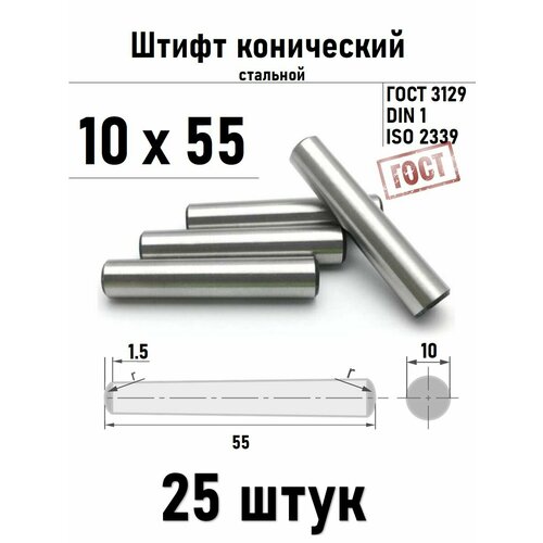 Штифт 10х55 конический ГОСТ 3129, DIN 1 сталь 25 шт: сравнение цен, характеристики, фото, актуальное наличие и цены.