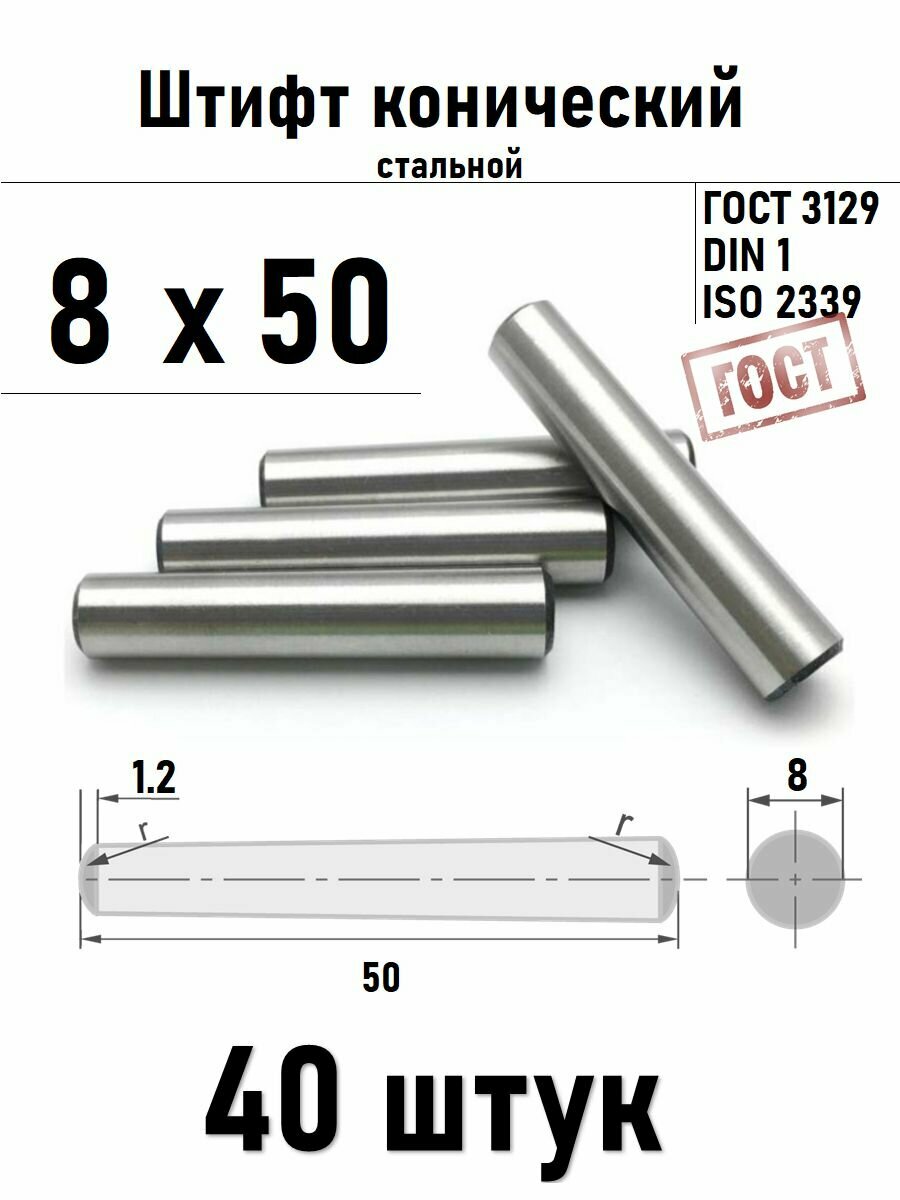 Штифт 8х50 конический ГОСТ 3129, DIN 1 сталь 40 шт: сравнение цен, характеристики, фото, актуальное наличие и цены.