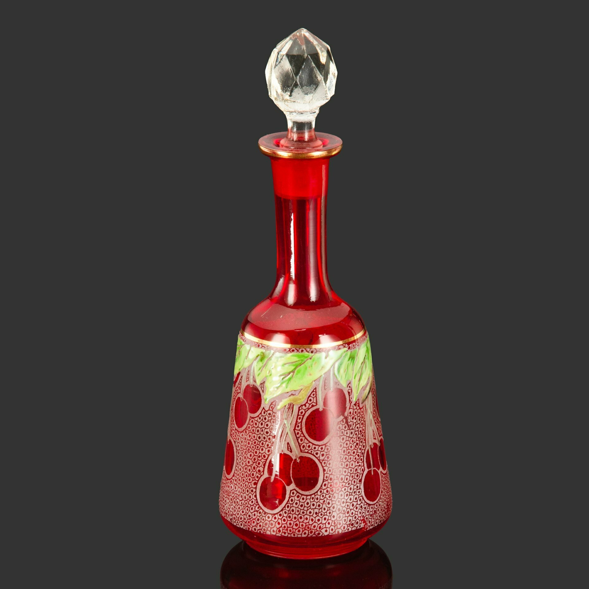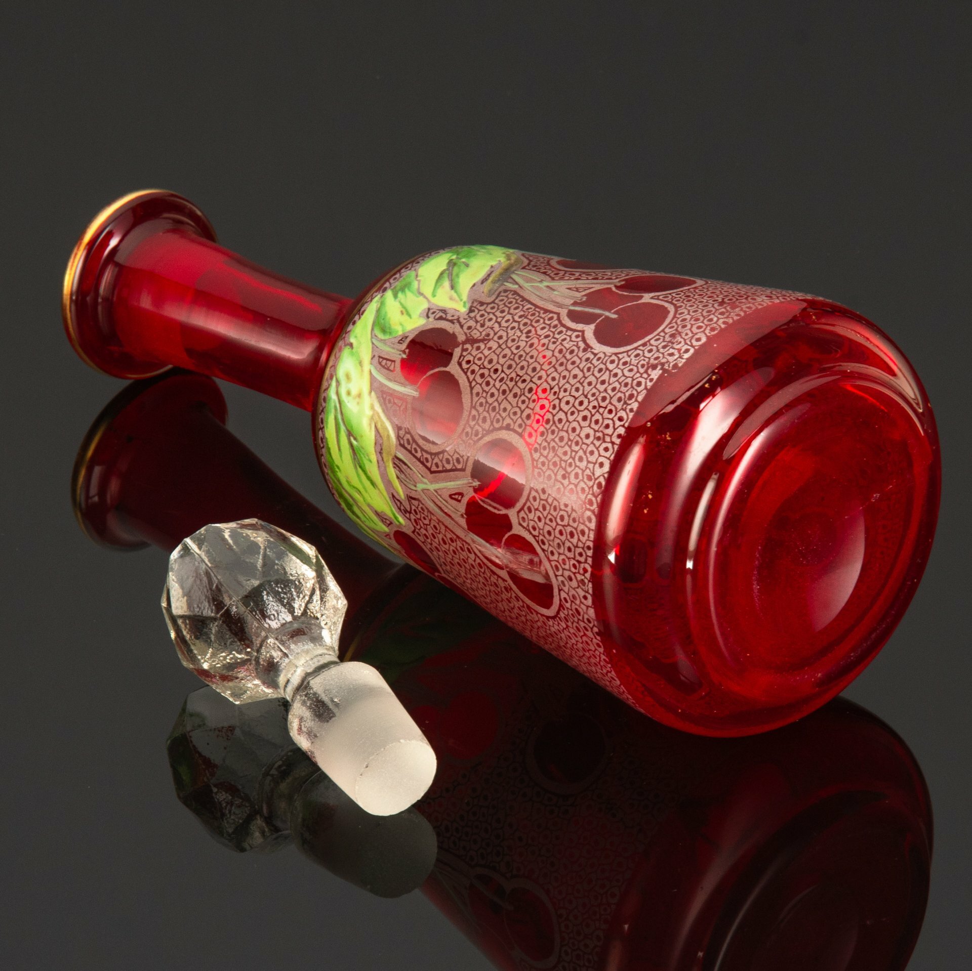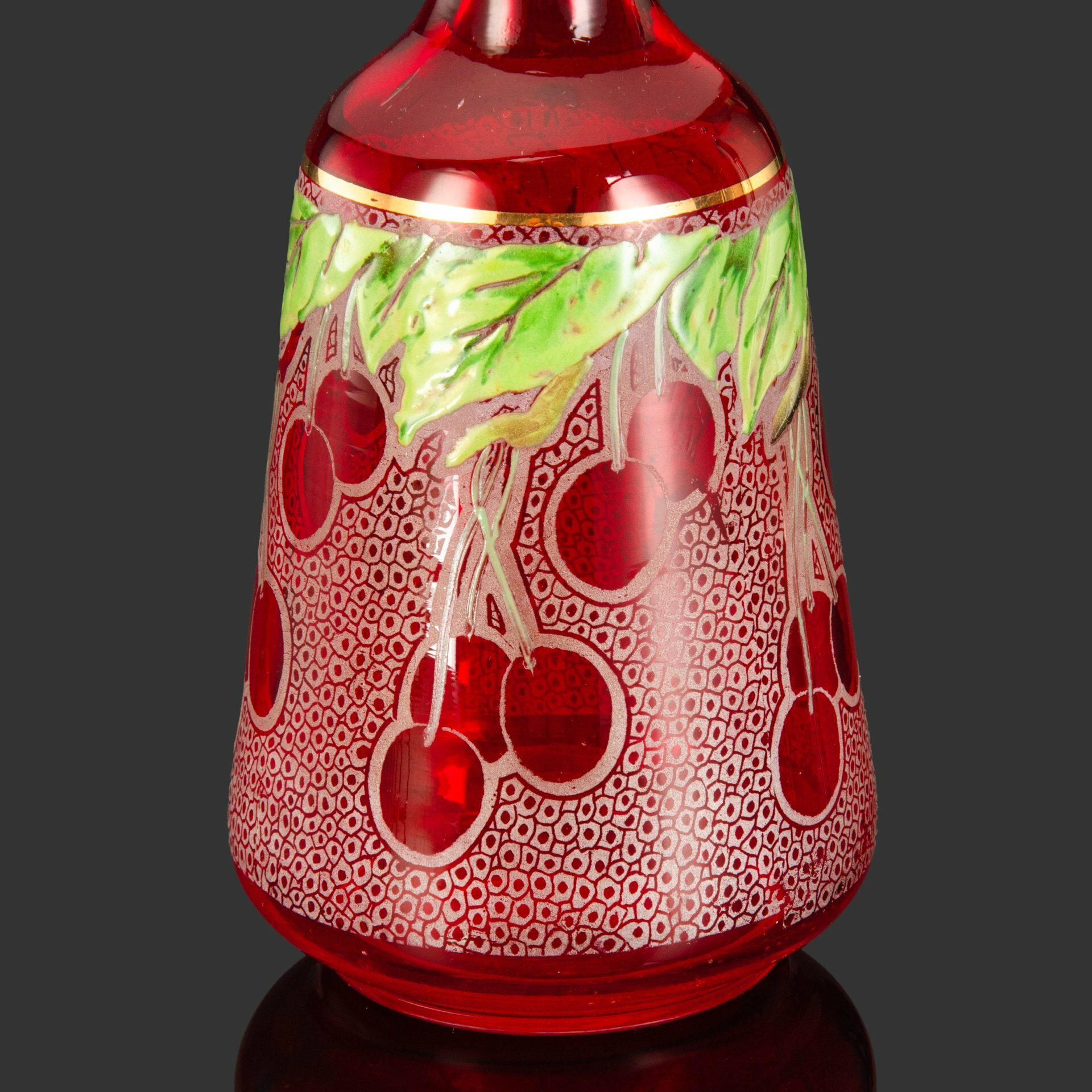 Купить Штоф для крепких напитков, с изображением ягод вишни, стекло, роспись, эмали с доставкой по всей России.