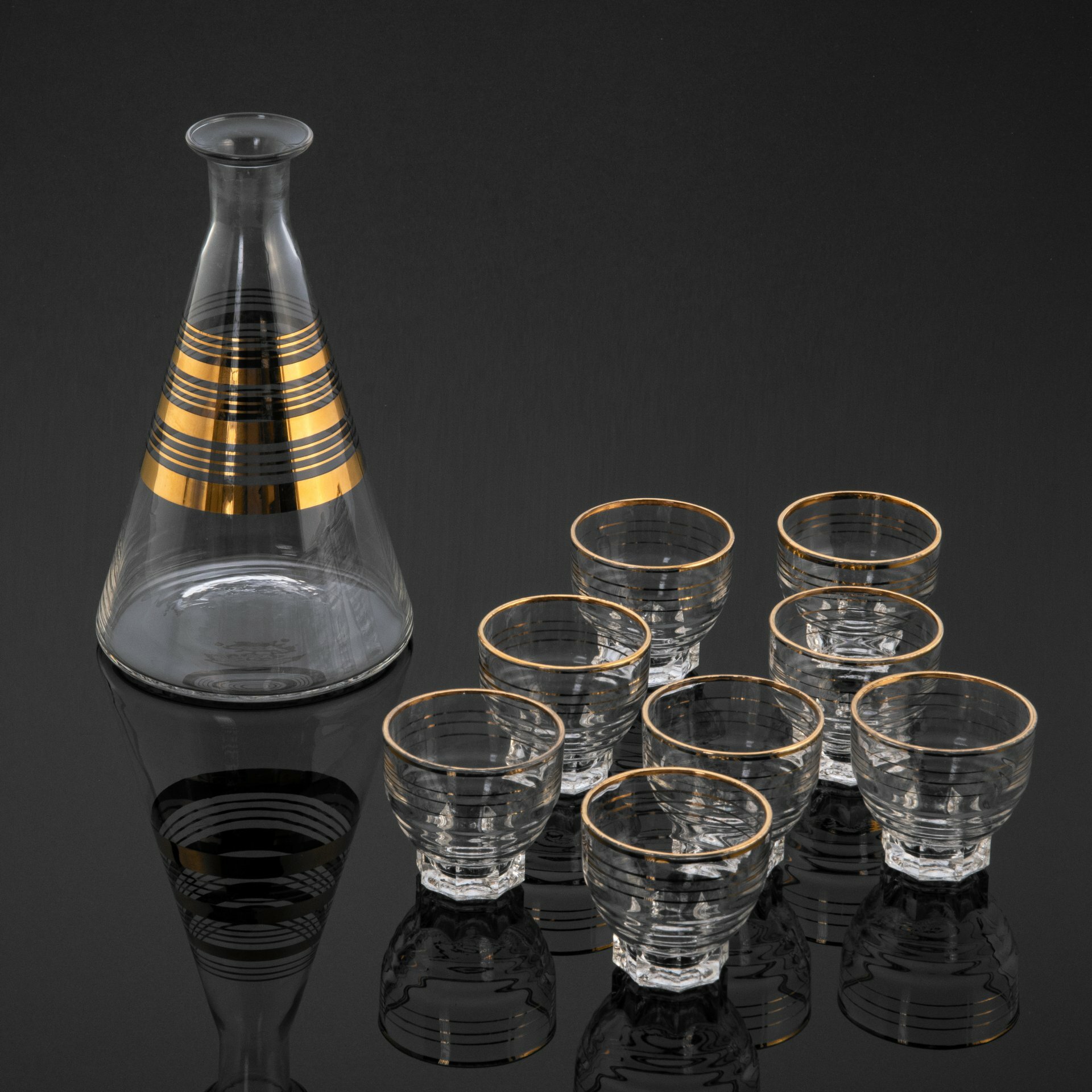 Штоф и 8 стопок для крепких напитков с золоченым орнаментом, стекло, золочение: сравнение цен, характеристики, фото, актуальное наличие и цены.