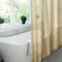 Занавеска для ванной Meiwa Linea 182х182см ПВХ золото. Занавеска 'Meiwa', высокоэластичная, влагонепроницаемая, легко моется, быстро сохнет. Сохраняет яркость расцветки, не тускнеет. Трехмерное изображение позволит зрительно расширить пространство ванной комнаты.