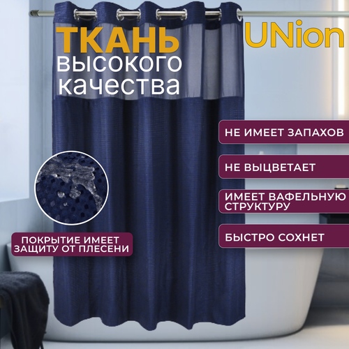 Шторка для ванной комнаты, премиального качества впишется в любой интерьер. Идеально подходит и для ванны, и для душа. Штора имеет съемную подложку с водоотталкивающим покрытием, которую можно легко отстегнуть и отдельно постирать в теплой воде. Занавеска имеет прозрачную полиэстеровую вставку на уровне глаз, Ткань шторы приятная на ощупь, обладает высокой прочностью, износостойкая, всегда выглядит как новая. Занавеска имеет широкие размыкающиеся хромированные люверсы, которые позволяют ее устанавливать без снятия карниза на 15 секунд. Супер быстрая и легкая установка. Можно стирать в стиральной машинке !