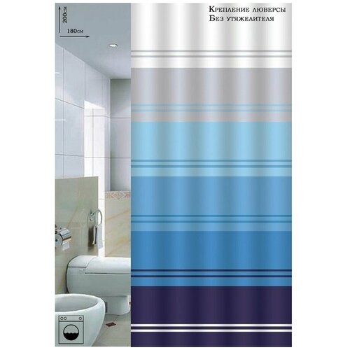 Штора для ванной комнаты. Размер: ширина шторы 200 см, высота 180 см. Материал: ткань полиэстер. Можно стирать вручную или в стиральной машине на деликатном режиме. Устойчивые пятна можно вывести мыльным раствором. Сушить изделие необходимо в расправленном состоянии. Штора из полиэстера не пропускает воздух, дольше сохнет, но зато лучше защищает от брызг. Кольца для шторы докупаются отдельно 9460076, 9460079. Для дома, ванной комнаты, туалета, дачи, для бассейна, для ванны, для душа.