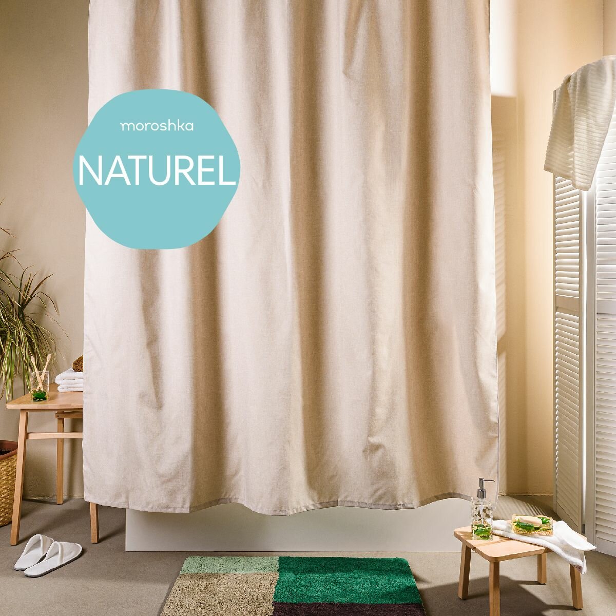 Купить Штора для ванной комнаты и душа бежевая водонепроницаемая тканевая 180х200 см, Naturel с доставкой по всей России. Штора для ванной комнаты и душа бежевая водонепроницаемая тканевая 180х200 см, Naturel: сравнение цен, характеристики, фото, актуальное наличие и цены.