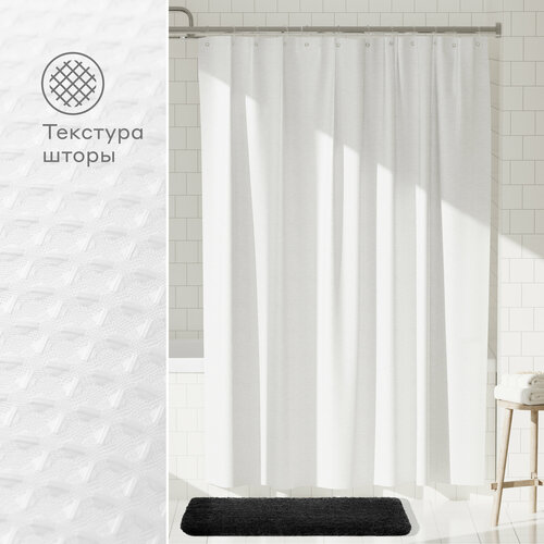 Текстильная штора для ванной Pragma Felgo с вафельной текстурой и жаккардовым узором дополнит интерьер ванной комнаты.