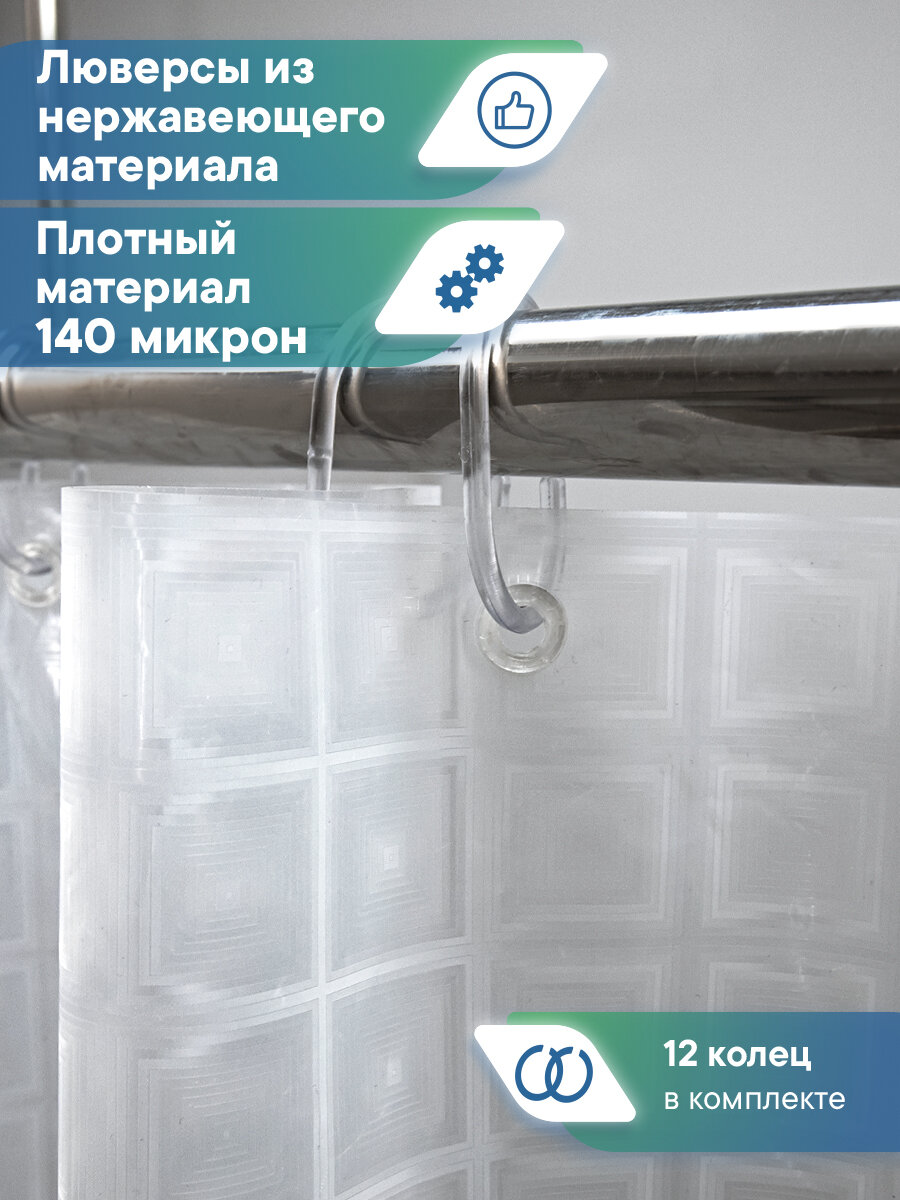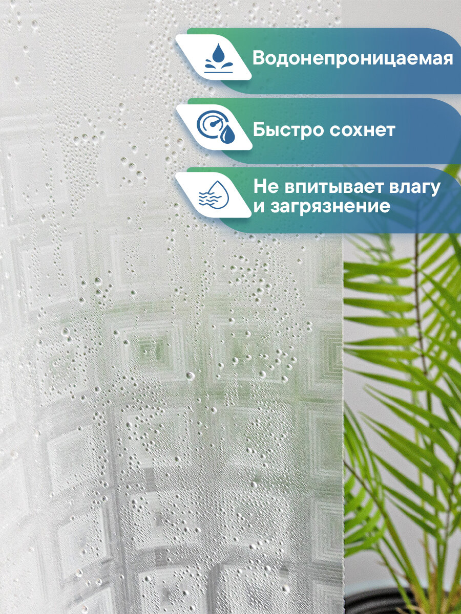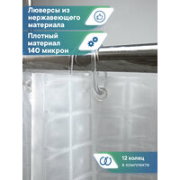 Штора для ванной комнаты и душа с люверсами «кристалл» 180х180см / шторка для душа водонепроницаемая с люверсами