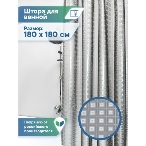 Штора для ванной комнаты и душа 180х180 см из высококачественного материала PEVA с пластиковыми прозрачными люверсами от российского производителя товаров для дома - вилина.