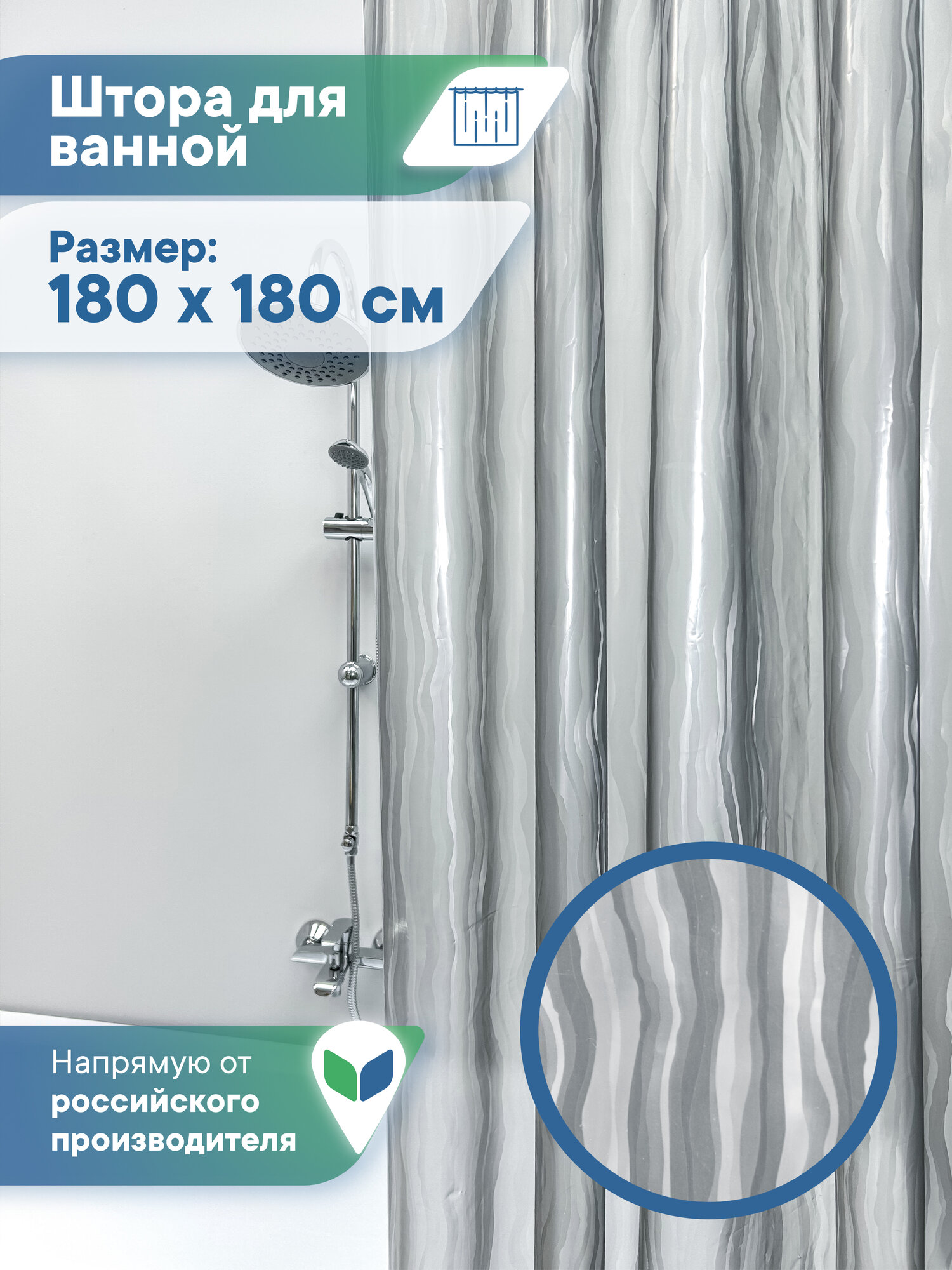 Штора для ванной комнаты и душа с люверсами «кристалл» 180х180см / шторка для душа водонепроницаемая с люверсами