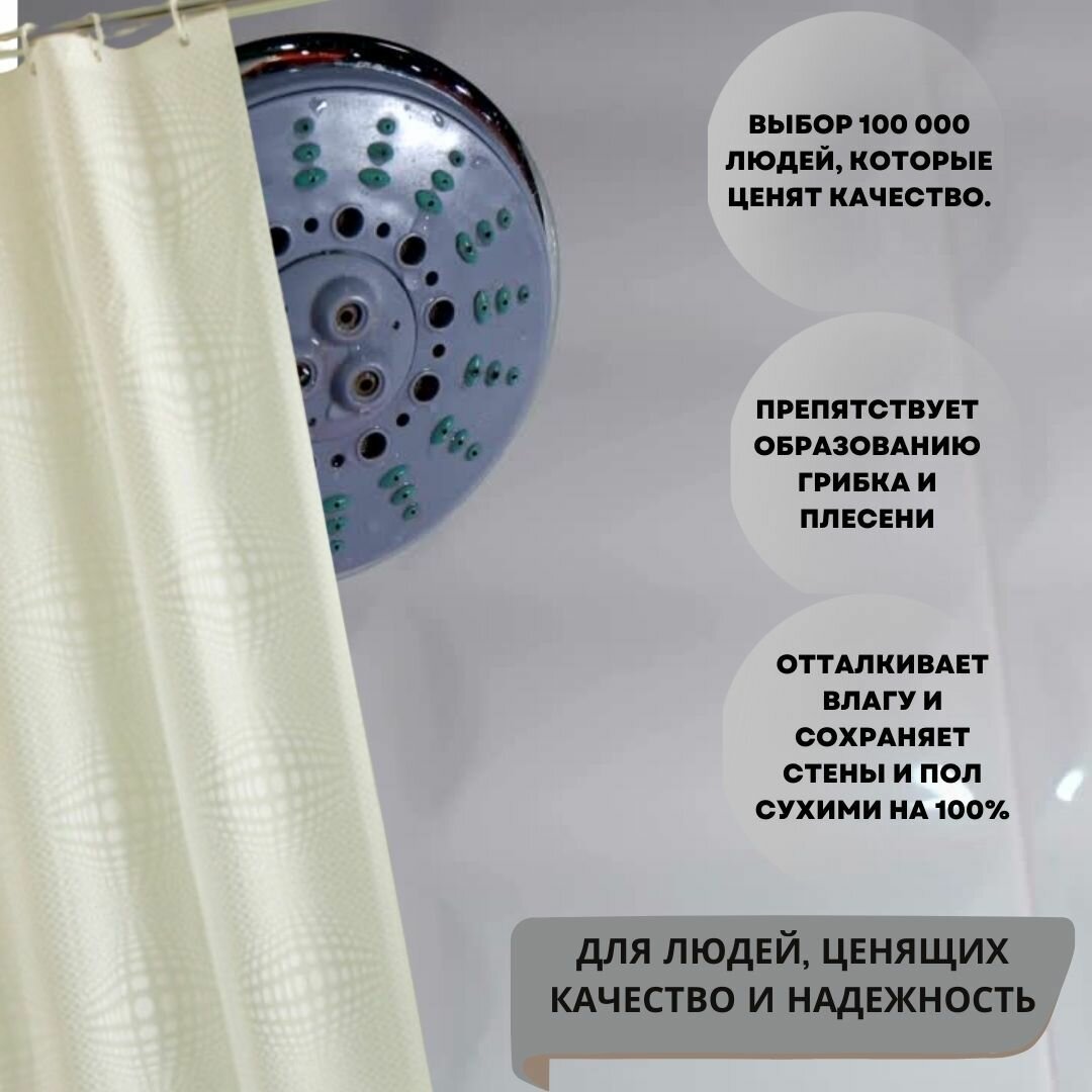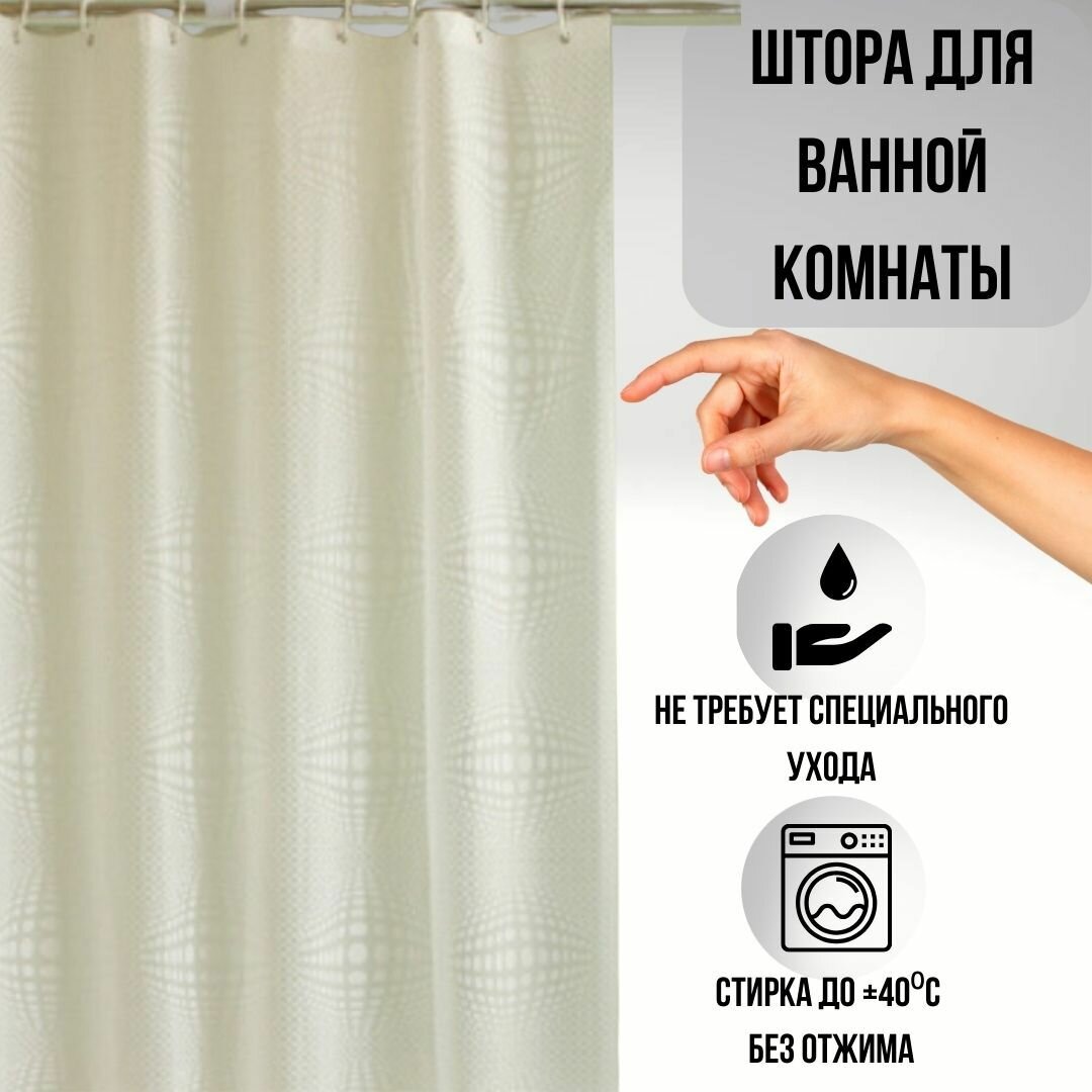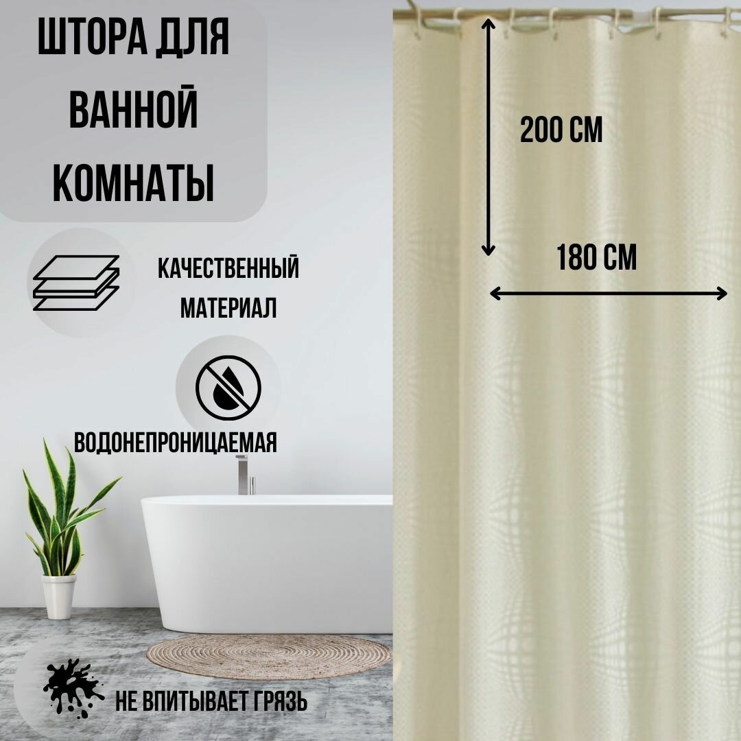 Штора для ванной 180×200 см с узором 3D кремовая из PVL поливинилхлорид: сравнение цен, характеристики, фото, актуальное наличие и цены.