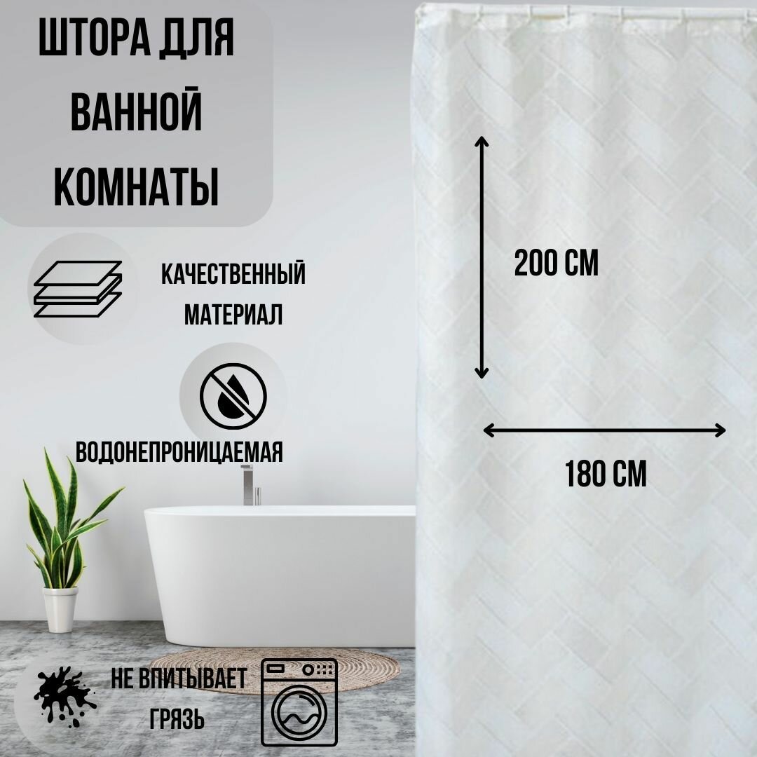 Штора для ванной 180х200 см с утяжелителем белая из 3D ткани полиэстер: сравнение цен, характеристики, фото, актуальное наличие и цены.