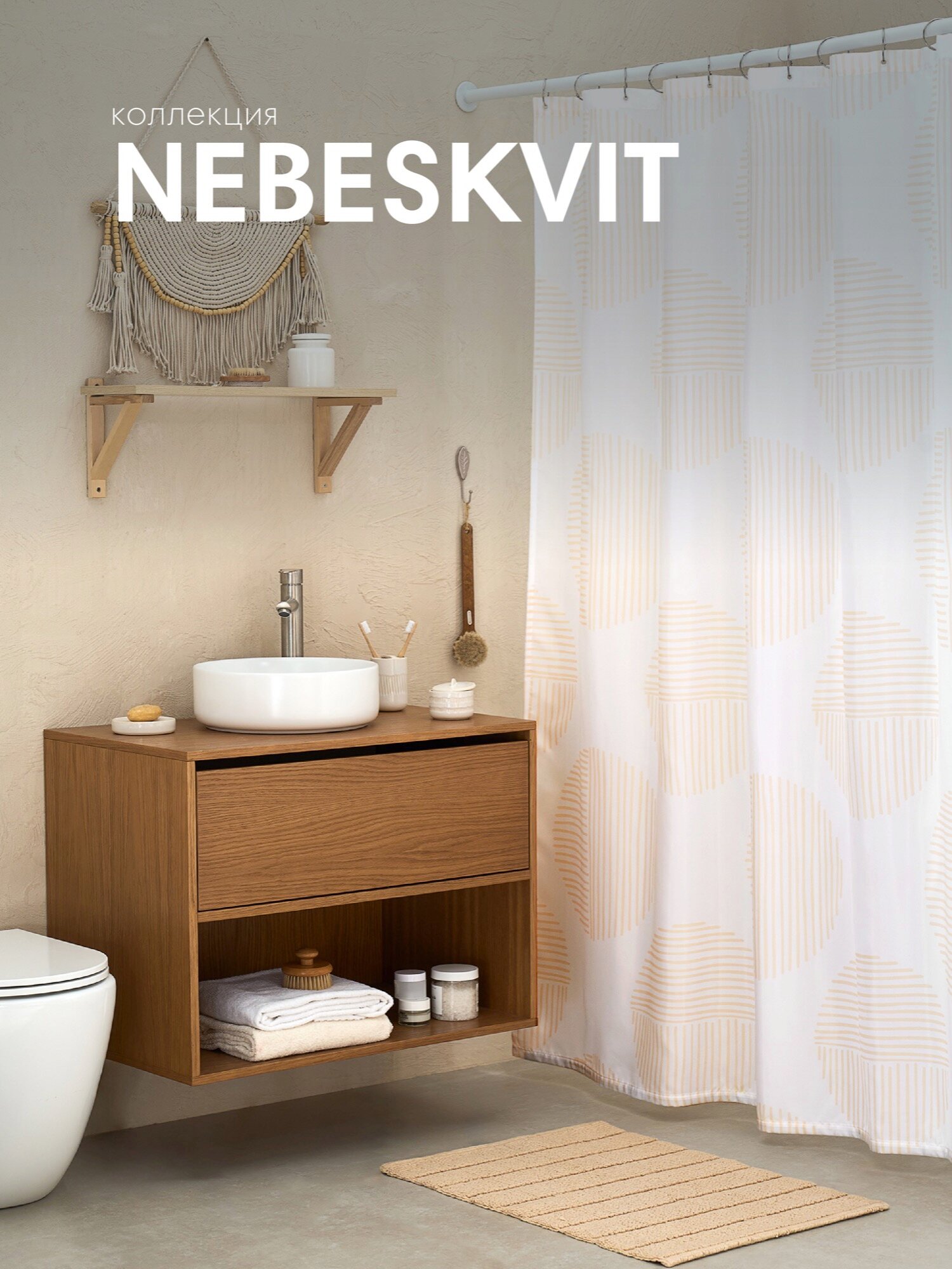 Тканевая занавеска для ванной комнаты является частью коллекции Nebeskvit, которая вдохновлена историей российских ремесленников и «Товарищества Кузнецовых» в частности. Текстильные аксессуары выполнены в мягких кремовых тонах и являются идейным продолжением центральных предметов коллекции. Деликатный рисунок в нежном бежевом цвете освежит интерьер, добавит тепло и уют.