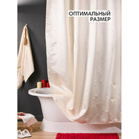 Пастельный цвет, нежный рисунок, жаккардовое плетение делают интерьер ванной комнаты благородным и уютным. Занавеска обладает оптимальной плотностью, которая не позволит ей прилипнуть к телу. Полотно не пропускает воду благодаря водоотталкивающему покрытию с двух сторон. За счет утяжелителя, вшитого по нижнему краю, ткань расправляется сама. Занавеска имеет 12 отверстий для колец. Кольца приобретаются отдельно.
