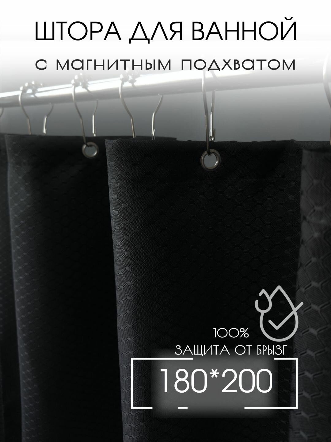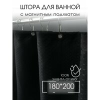 Штора для ванной тканевая, высота 200 см, ширина 180 см, черная, с магнитным подхватом, водоотталкивающая: сравнение цен, характеристики, фото, актуальное наличие и цены.