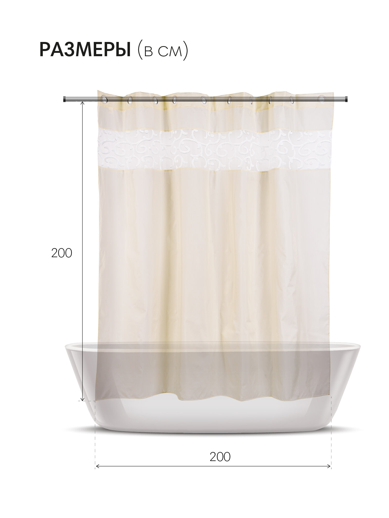Штора для ванной тканевая полиэстер бежевый 200х200 см, на кольцах / шторка для душа водоотталкивающая: сравнение цен, характеристики, фото, актуальное наличие и цены.