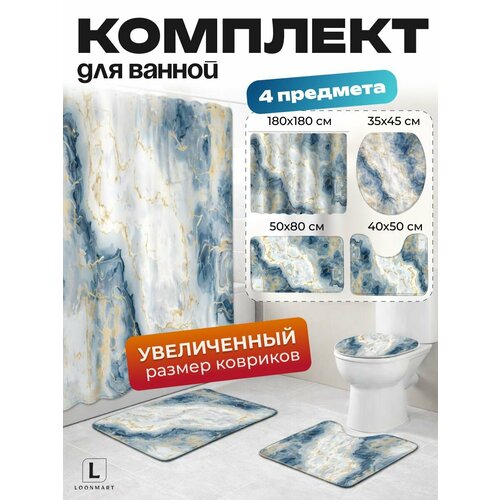 Купить Штора и коврики «Мрамор», для ванной комнаты, комплект 4 в 1, водоотталкивающая ткань с доставкой по всей России. Штора и коврики «Мрамор», для ванной комнаты, комплект 4 в 1, водоотталкивающая ткань: сравнение цен, характеристики, фото, актуальное наличие и цены.