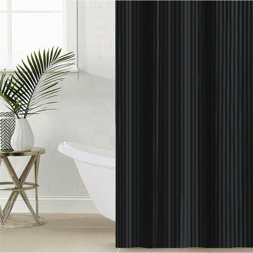 Штора в ванную Этель в полоску цвет черный, 180*200 см, 80гр/м2, 100% п/э