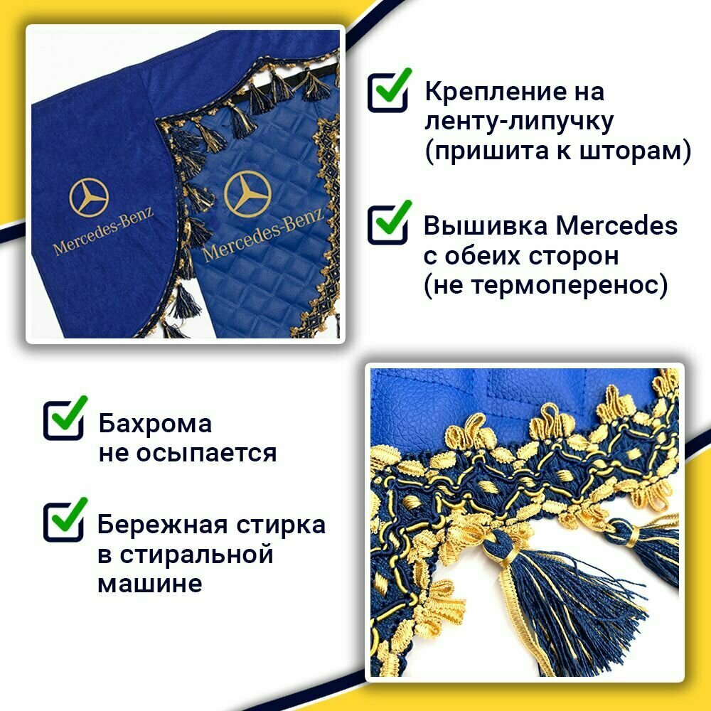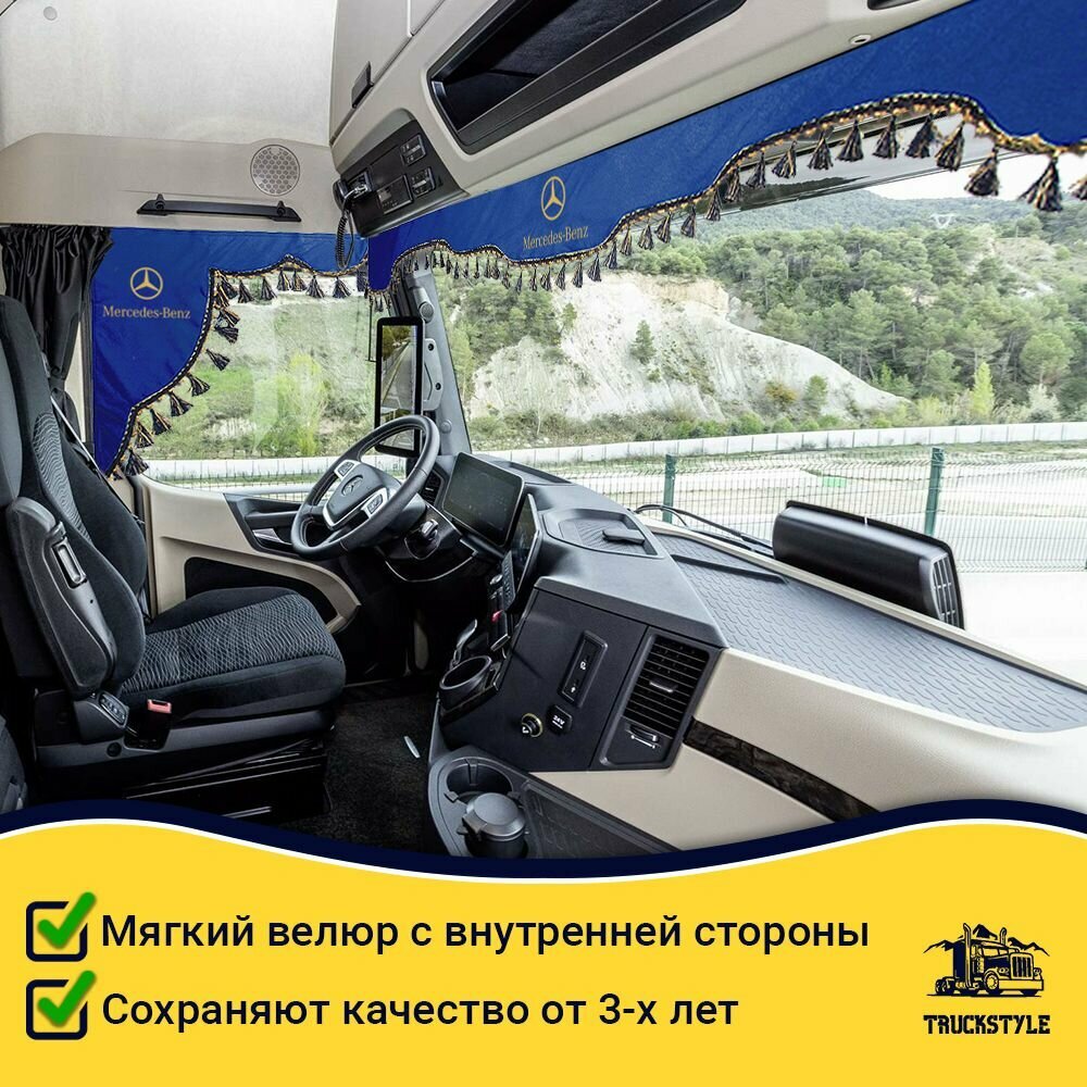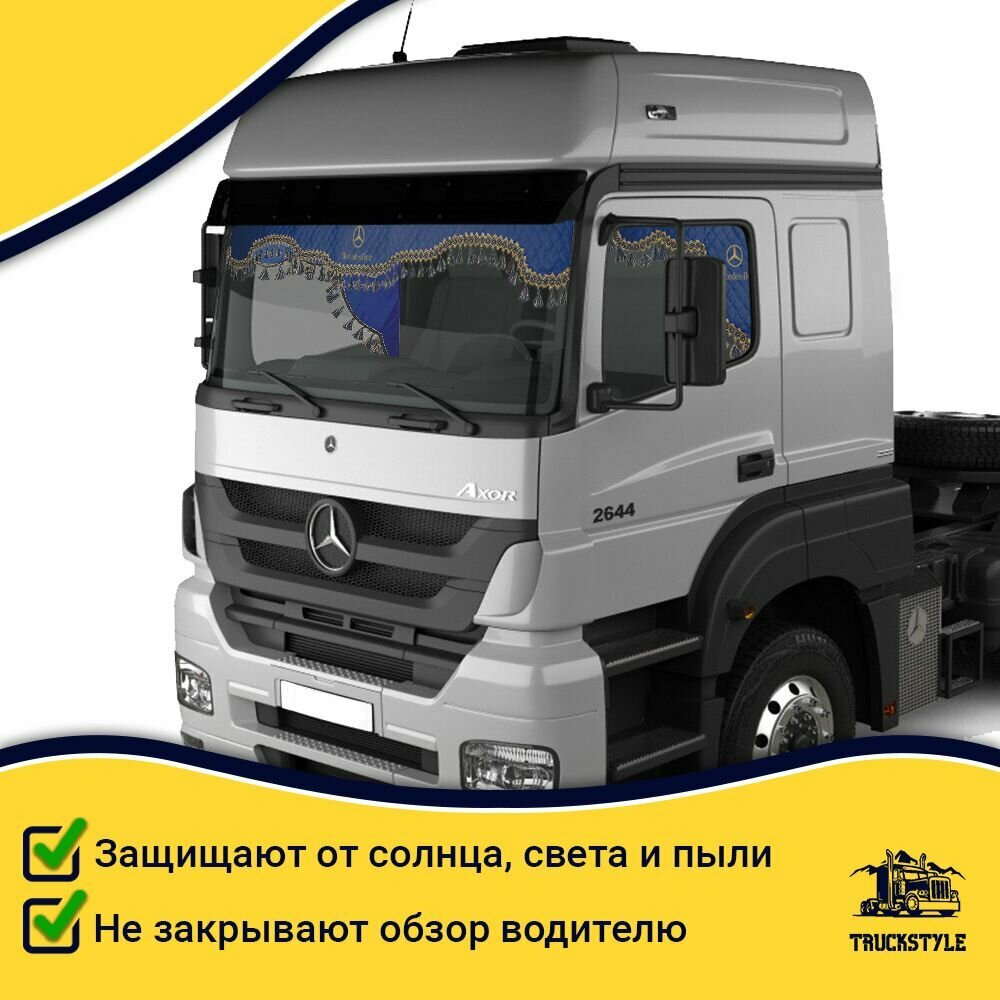 Шторка автомобильная на MERCEDES для грузовиков. Комплект ламбрекен с косынками. Шторки солнцезащитные на лобое и боковые двери. Синий цвет с синими кистями Truck Style: сравнение цен, характеристики, фото, актуальное наличие и цены.