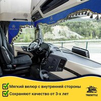 Купить Шторка автомобильная на MERCEDES для грузовиков. Комплект ламбрекен с косынками. Шторки солнцезащитные на лобое и боковые двери. Синий цвет с синими кистями Truck Style с доставкой по всей России.