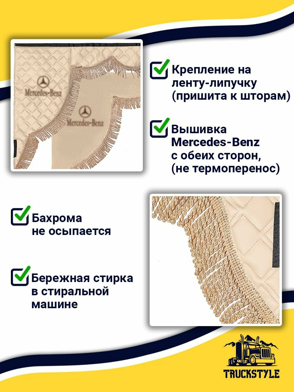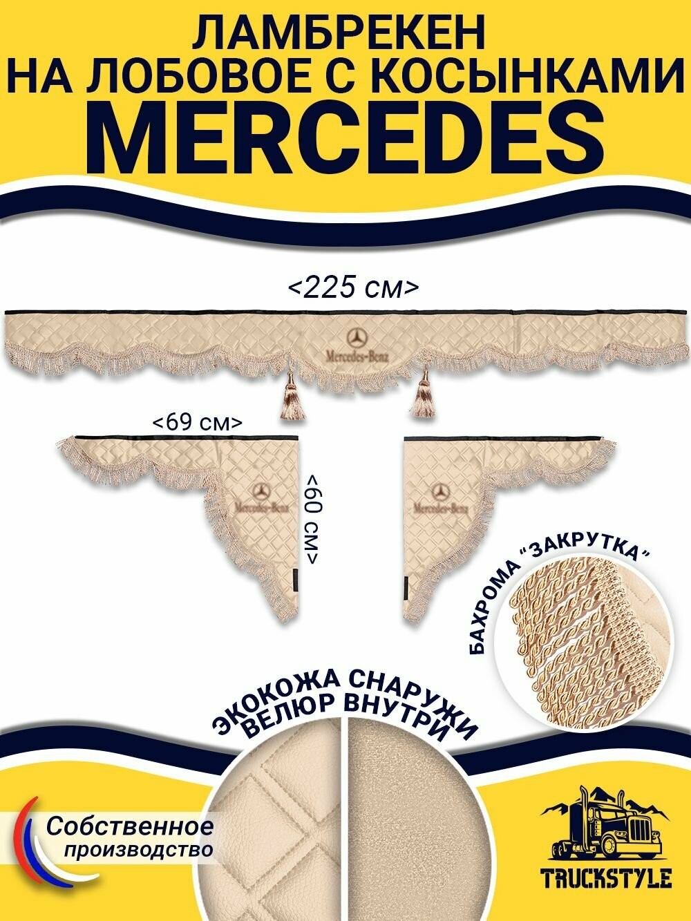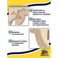 Шторка на лобовое MERCEDES для грузовиков. «Закрутка». Полный комплект ламбрекен с косынками. Шторки солнцезащитные на лобовое и боковые двери. Бежевый цвет с бежевой бахромой «закрутка». Мерседес: сравнение цен, характеристики, фото, актуальное наличие и цены.