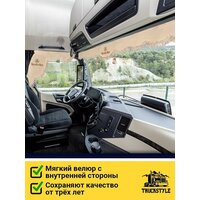 Купить Шторка на лобовое MERCEDES для грузовиков. «Закрутка». Полный комплект ламбрекен с косынками. Шторки солнцезащитные на лобовое и боковые двери. Бежевый цвет с бежевой бахромой «закрутка». Мерседес с доставкой по всей России.