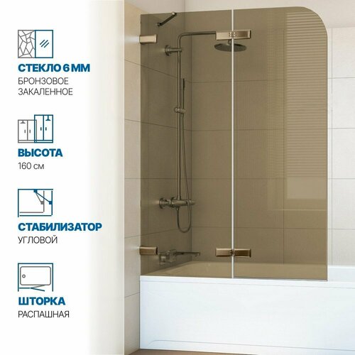 Шторка на ванну двухсегментная с одной поворотной на 360° деталю GWMPTRPL862A-66 производства фабрики GuteWetter.