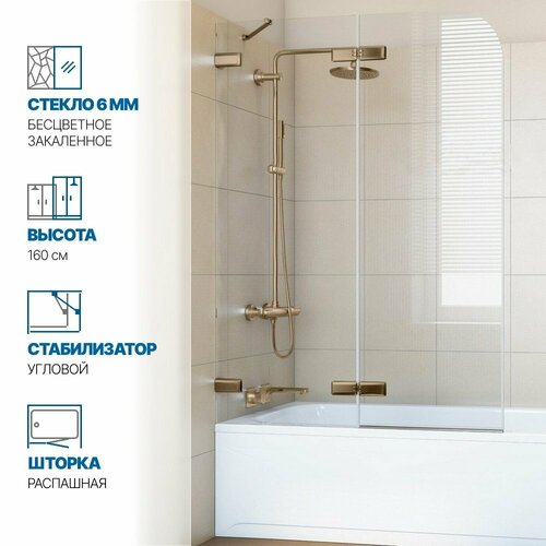 Шторка на ванну GWMPTRPL862A-66 110×160 см, цвет фурнитуры бронзовый, стекло бесцветное закаленное 6 мм: сравнение цен, характеристики, фото, актуальное наличие и цены.