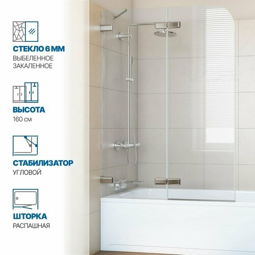 Шторка на ванну двухсегментная с одной поворотной на 360° деталю GWMPTRPL862A-66 производства фабрики GuteWetter.