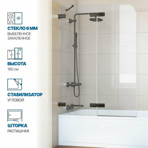 Шторка на ванну GWMPTRPL862A-66 95×160 см, цвет фурнитуры черный матовый, стекло выбеленное закаленное 6 мм: сравнение цен, характеристики, фото, актуальное наличие и цены.